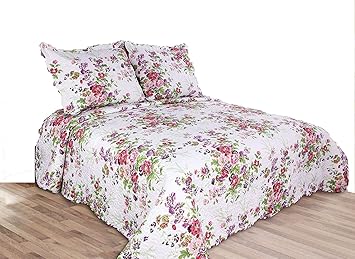 All For You 3 Piece Reversible Coverlet Quilt Set Bedspread King Size 90 X 100 Pink And Purple Flower